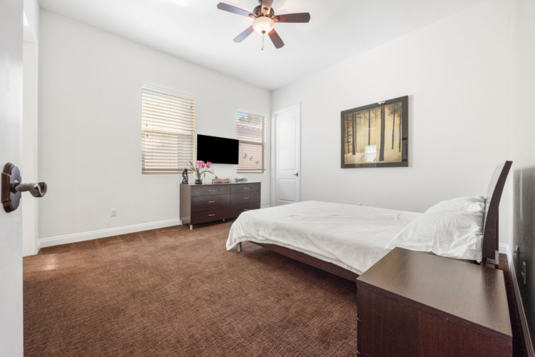 Located just 5 minutes from Coachella Festivals, Serenity is a beautiful art deco vacation home that beckons endless white Carrera tiles, from an oversized fully equipped gourmet kitchen, an oversized alpine white granite island and dark mahogany cabinets that is surrounded by a spacious mourning room, breakfast nook with mountain views and a king white leather bed and sofa to match comfortably able to sleep 2.