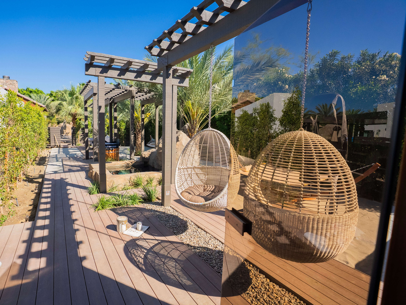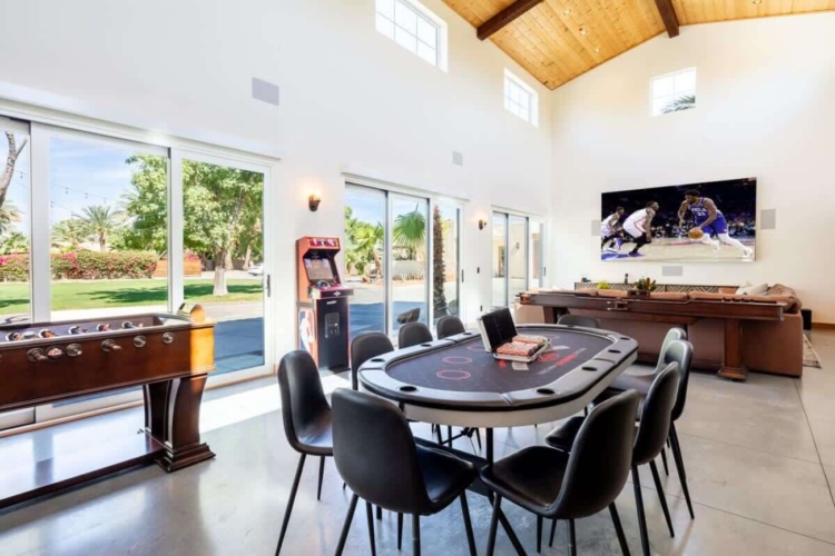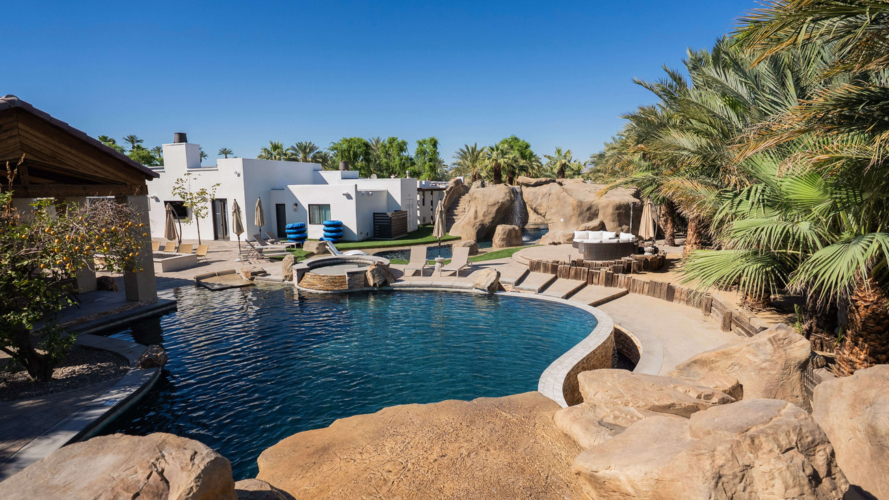 Unwind in style at this elegant retreat just walking distance from Coachella & Stagecoach. Whether you’re hosting an intimate event or relaxing with loved ones, from a private Lazy River pool with waterfall grotto to a lively game room and expansive indoor-outdoor entertaining areas.
